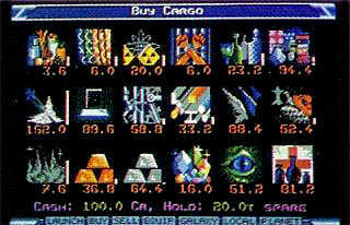 You start off with your ship docked just off the planet Lave, an arsenal of three missiles and a pulse laser, fuel for a hyperspace jump of 7 lightyears, 100 credits and a rating as Harmless. At this point you can choose to stock up on various commodities for future trading. By playing the intergalactic stock market you can accrue sufficient credits to stock on 14 types of hardware and armaments - galactic hyperdrives, military lasers, fuel scoops and escape capsules among them. Docking computers might be your best buy though as attempting to dock with a revolving dodecahedral space station involves manual dexterity that wouldn't go amiss at NASA. Then you knuckle down to some raw aggression and commence the long climb through the ranks of Mostly Harmless, Poor, Average, Above Average, Competent, Dangerous, Deadly and, ultimately, Elite.