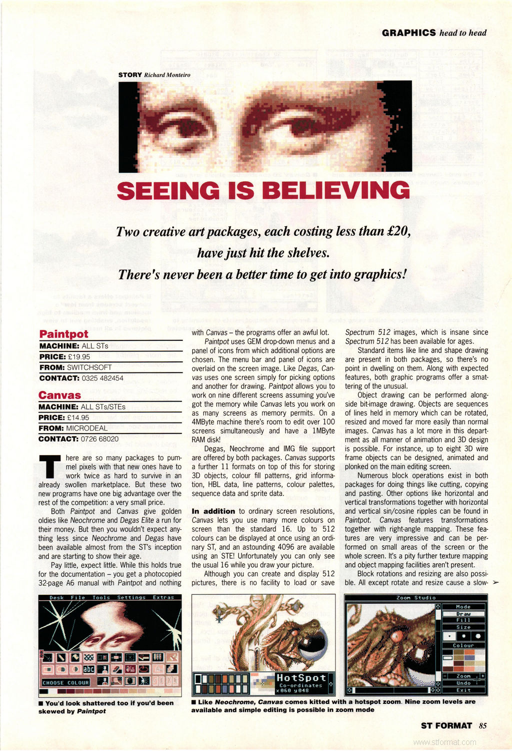 • | Canvas Demo | Demonstrate your artistic ability with Microdeal's phenomenal 512-colour art package for all STs and STEs. (no save) |