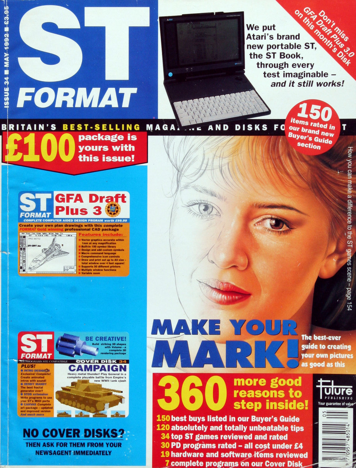 150 best buys listed in our Buyer's Guide. 120 absolutely and totally unbeatable tips. 34 top ST games reviewed and rated. 30 PD programs rated - all cost under £4. 19 hardware and software items reviewed. 7 complete programs on our Cover Disk